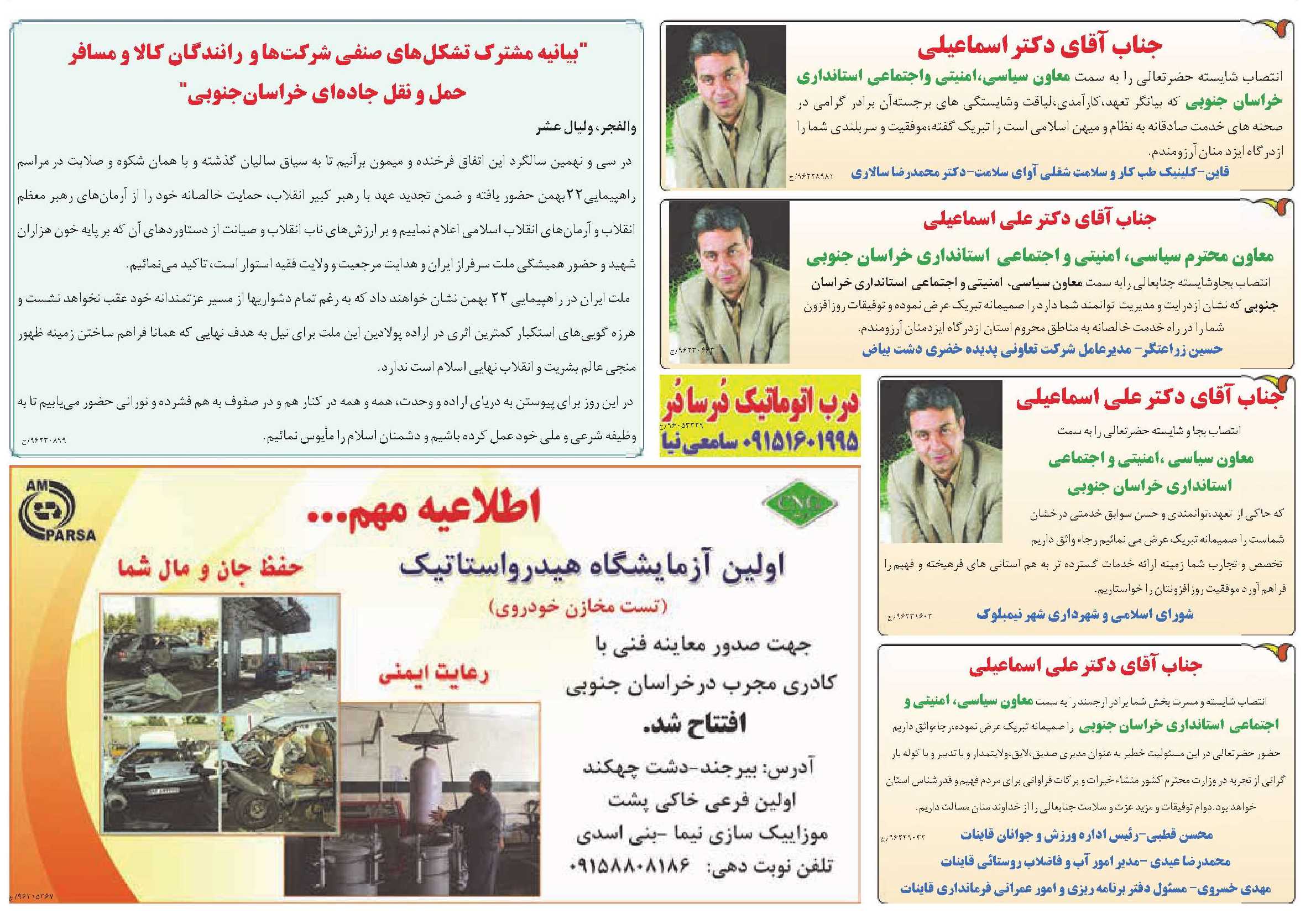 دیگر شهروند بیرجندی هم با اشاره به اهمیت حضور در راهپیمایی 22 بهمن امسال به «خراسان جنوبی» می گوید: این روز نماد اتحاد ، همدلی و قدرت ملت ایران است و از آن جا که این قدرت باید برای همیشه حفظ شود حضور در مراسم این روز برای هر ایرانی ضرورت دارد تا هیچ ابرقدرتی جرات تعدی به کشور را نداشته باشد. «عبیری» حضور مردم در راهپیمایی 22 بهمن را موجب دلگرمی دوستان و نا امیدی دشمنان نظام اسلامی ایران دانسته و اضافه می کند: تا کنون هر رئیس جمهوری که در آمریکا روی کار آمده است دشمنی با ایران را در سیاست های خود داشته است و سیاست مداران این کشور همیشه به دنبال روزنه ای می گردند تا بتوانند ضربه ای به ملت و نظام ایران بزنند اما این حضور به آن ها می فهماند که ملت ایران همیشه بیدار و آگاه هستند و هرگز دشمن نمی تواند گزندی به این ملت برساند.